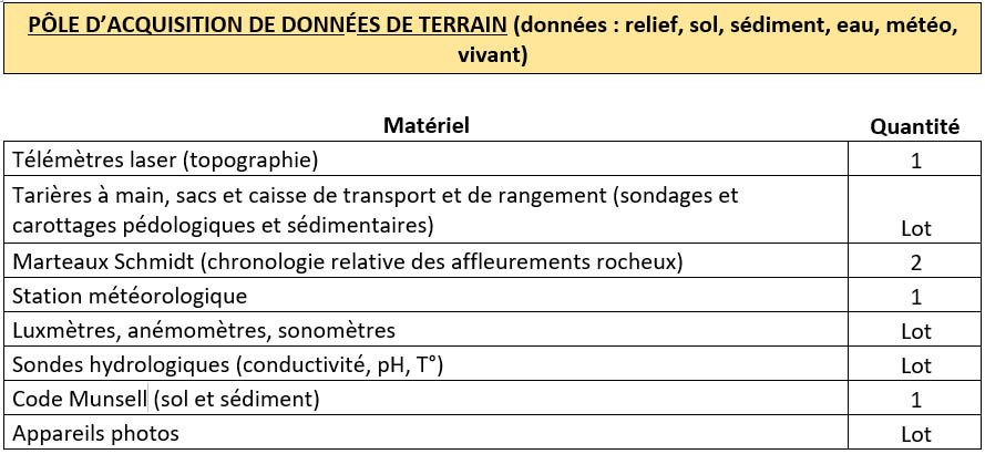 - L’ACQUISITION de données de terrain (données : relief, sol, sédiment, eau, vivant)