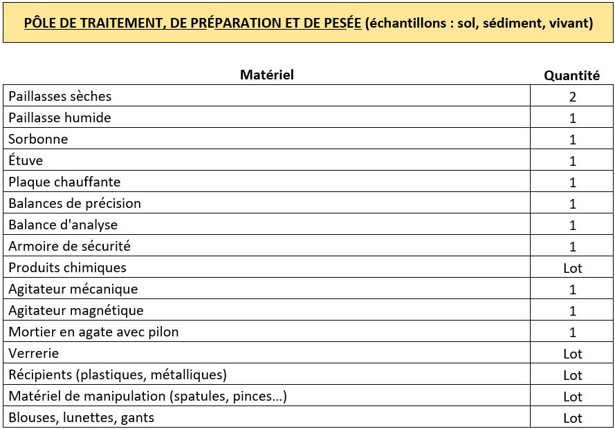 - Le TRAITEMENT, la PRÉPARATION et la PESÉE (échantillons : sol, sédiment, vivant)