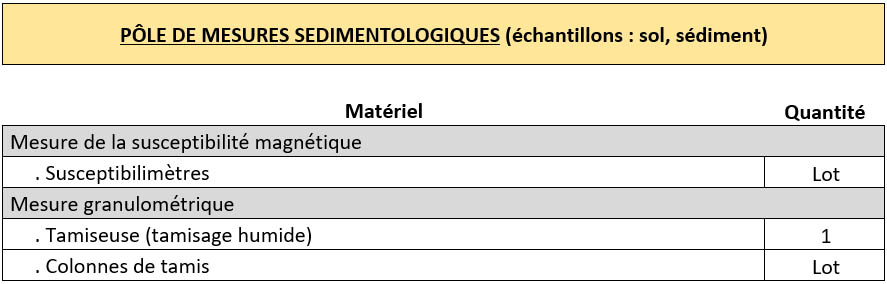 - Des MESURES SÉDIMENTOLOGIQUES (échantillons : sol, sédiment)