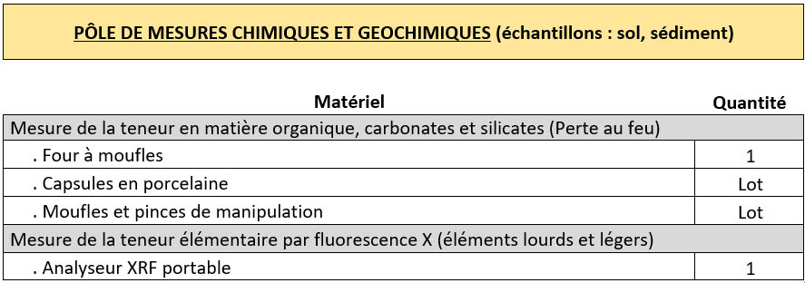 Matériels de la plateforme analytique de GÉOgraphie Physique et Environnementale (GÉOPE)