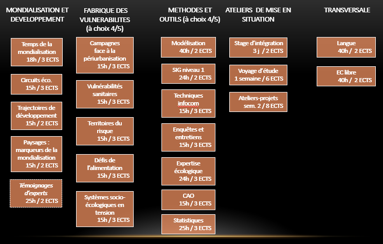 La 2ème année approfondit l’étude des vulnérabilités et permet d’acquérir des compétences d’analyse et d’ingénierie dans le domaine du développement local.