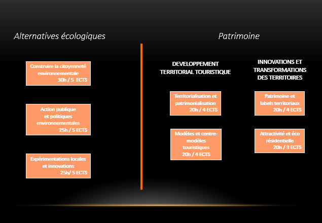 La spécialisation « Résistances et adaptations à la mondialisation par les patrimoines » questionne le rôle de ceux-ci dans la fabrique des territoires et des lieux, par la valorisation de ceux-ci à toutes les échelles de sa reconnaissance. La valorisation du patrimoine est souvent associée à celle du tourisme et à ses limites sur le développement local. (Cette spécialisation n’a pas été ouverte pour la rentrée 2025)