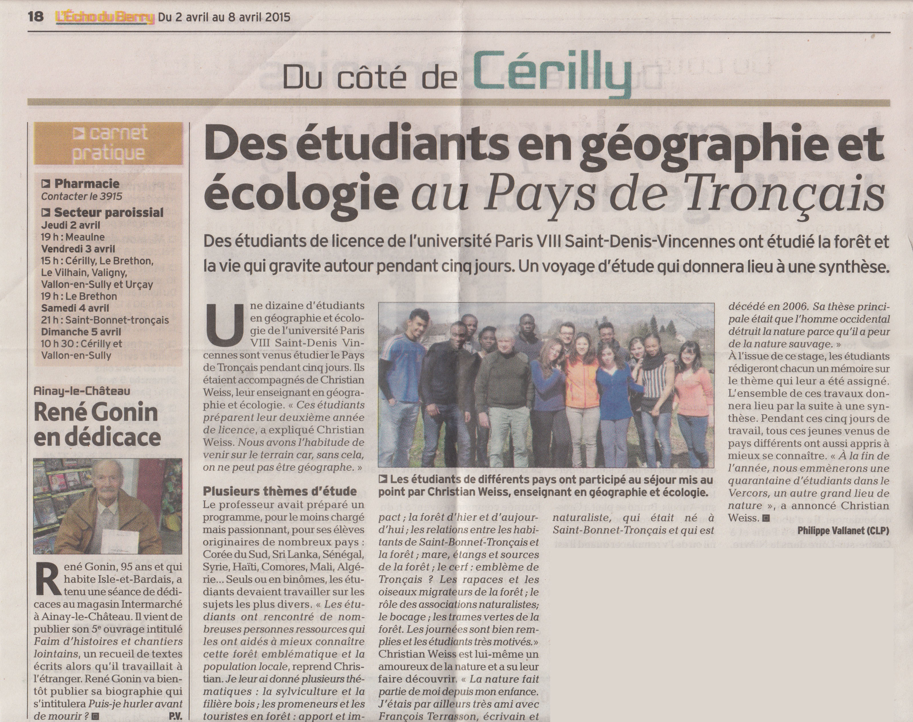 Un article du journal La Montagne relate le séjour des étudiants de Licence 2 sous la conduite de Christian Weiss, en mars 2015.